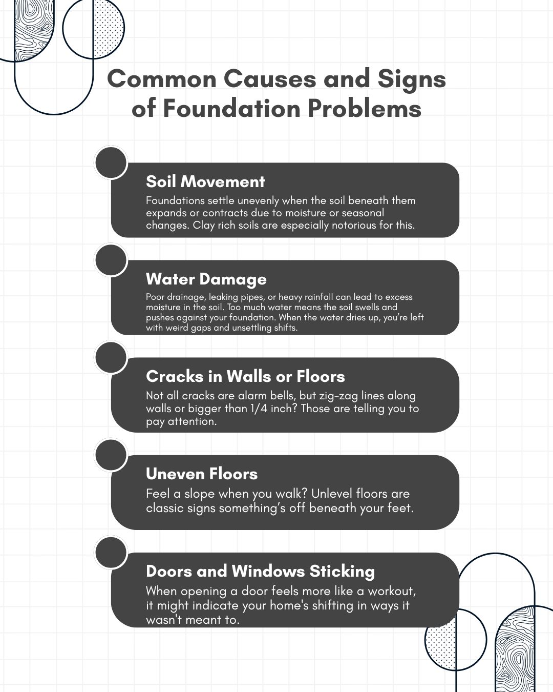 Foundations don’t just crumble overnight. They’re under constant stress from the environment and the very building they support. Understanding what causes these issues and recognizing the symptoms early can save you a lot of grief and cash. So, let’s break it down.